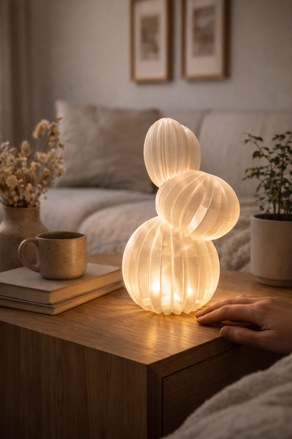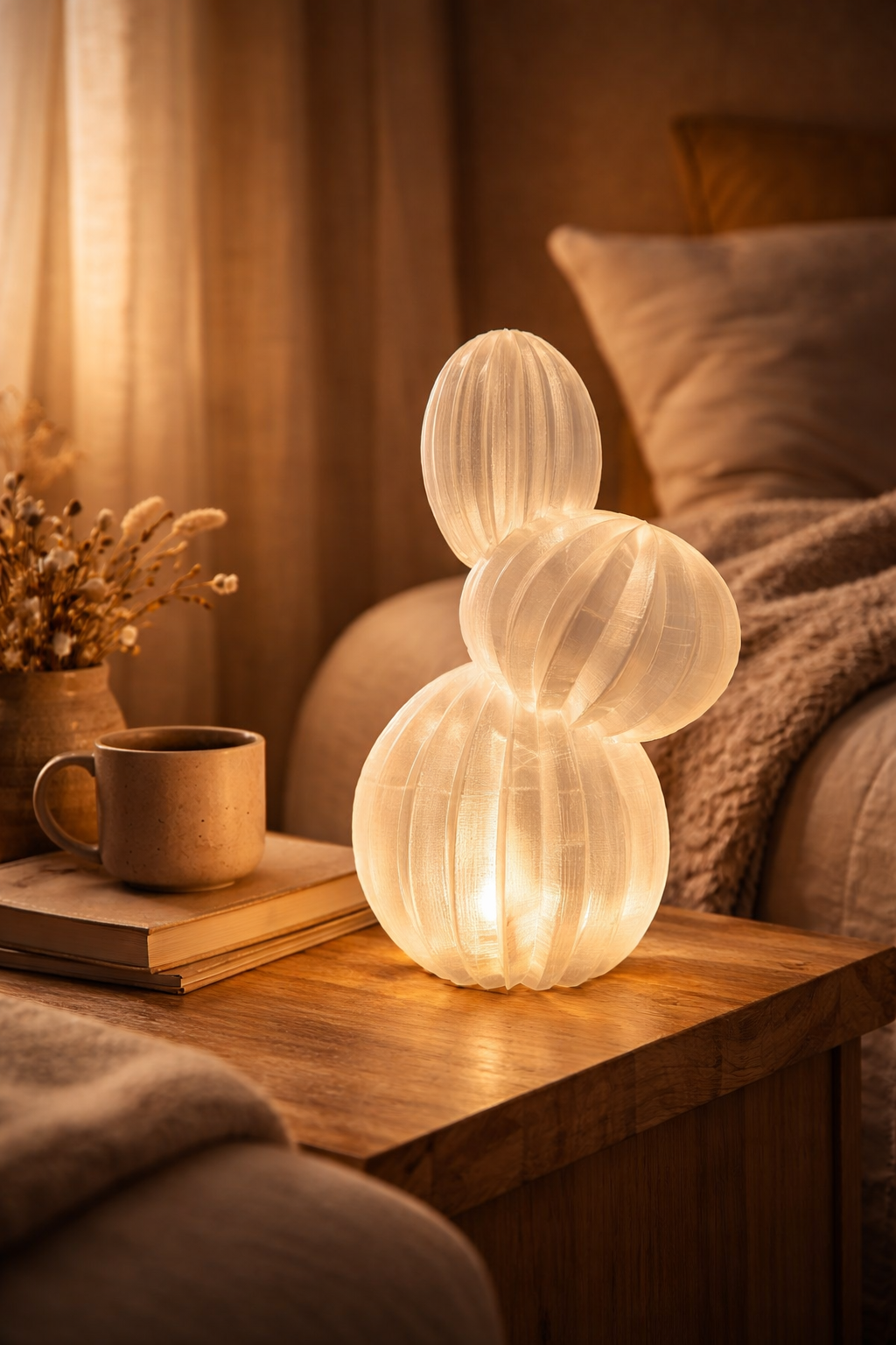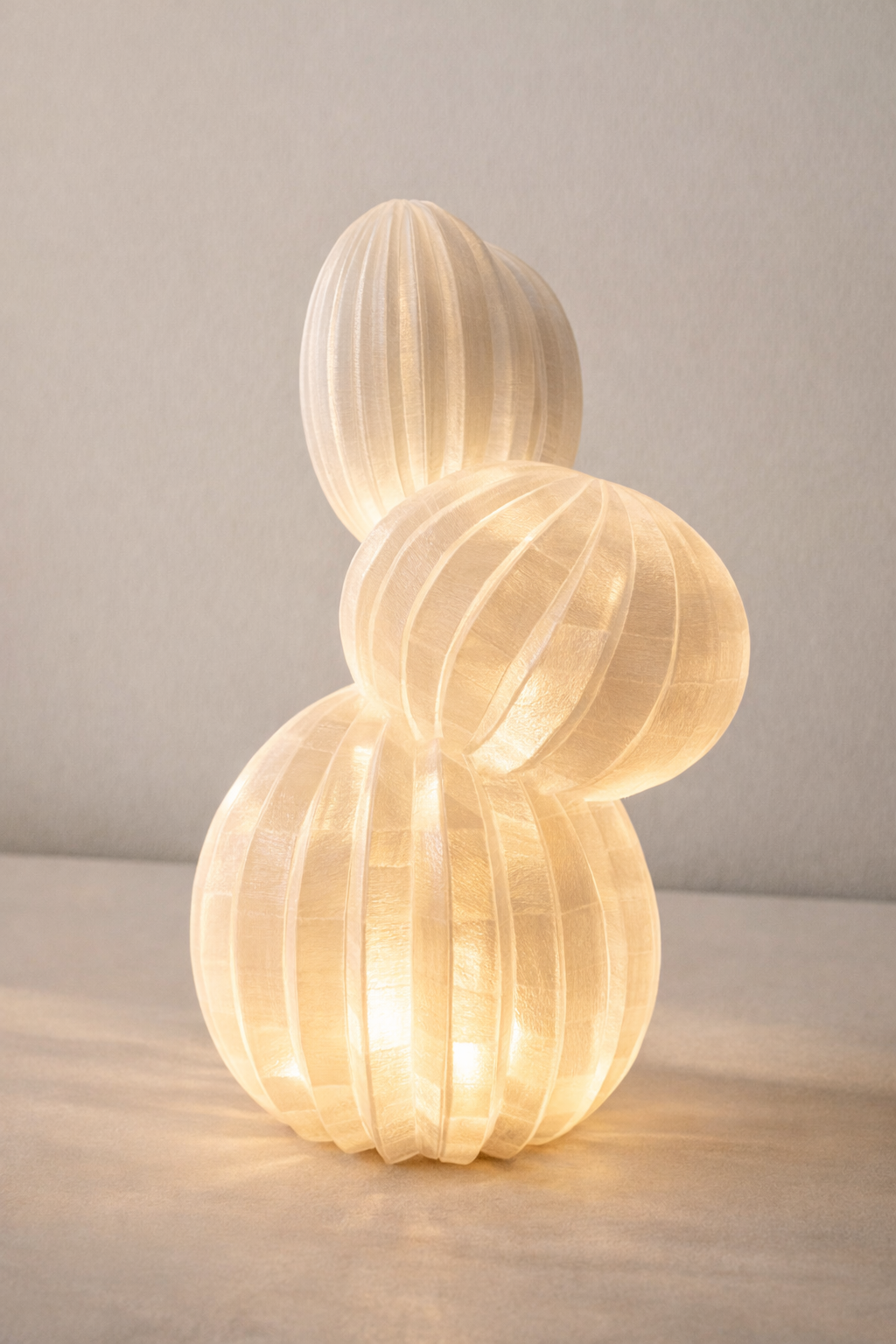 De Noa Bunny – Limited Edition is een sculpturale sfeerlamp die warmte en zachtheid toevoegt aan je interieur. Het gelaagde, geribde ontwerp verspreidt het licht op een subtiele manier, waardoor een warme, zachte gloed ontstaat die elke ruimte transformeert tot een rustgevende plek. Minimalistisch en speels tegelijk, modern maar tijdloos, is deze lamp niet alleen een lichtbron maar ook een designobject dat overdag net zo mooi is als ’s avonds wanneer hij brandt. Dankzij de beperkte oplage voelt elke Noa Bunny bijzonder en exclusief aan — een bewust gekozen accent dat sfeer, karakter en sereniteit brengt in slaapkamer, woonkamer of leeshoek. Licht dat niet alleen verlicht, maar een gevoel van thuis creëert.
